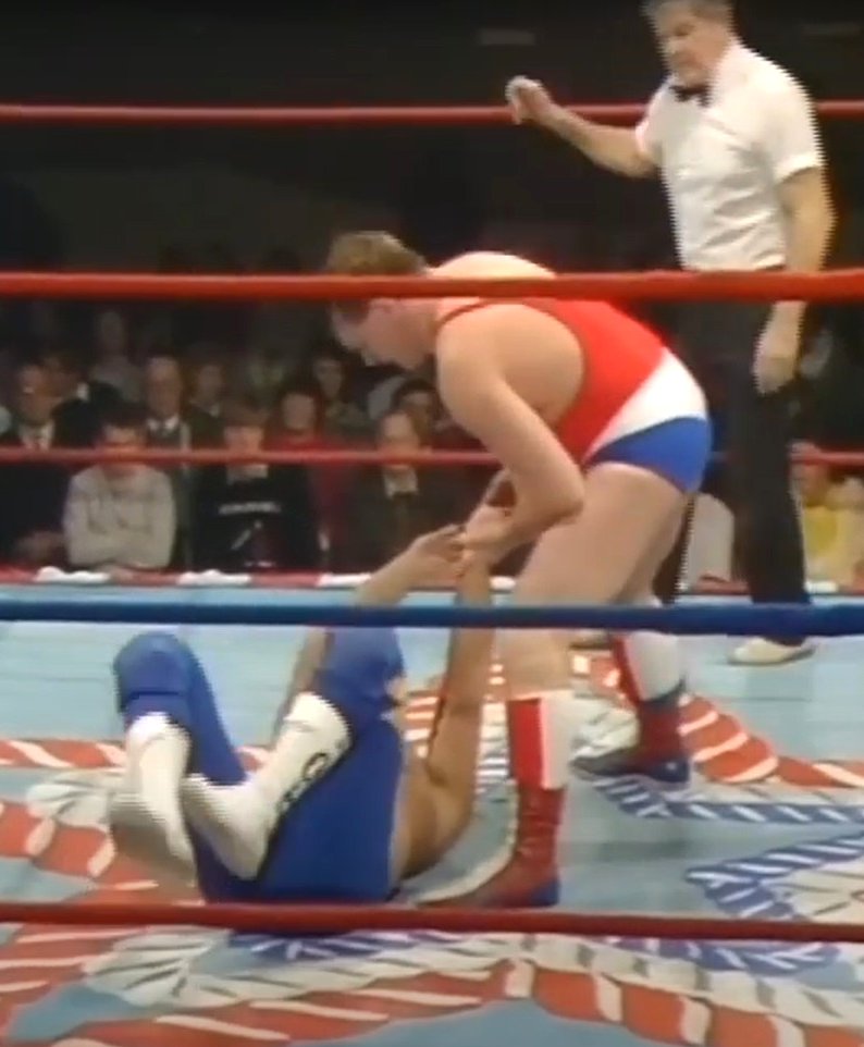 Joint Promotions WOS Wrestling TV 4/26/84 Nottingham, England: Marty Jones vs. Pete Roberts. This was joined in progress. This appeared to be the origin of the dual chanting, as the crowd was chanting loudly like a modern British crowd would. These two grapplers were going back and forth as well. Marty Jones scored the equalizing fall over ‘Destroyer' Pete Roberts. This was definitely one of the most exciting Pete Roberts matches. Jones gave a great performance. Not surprisingly, the match ended in a draw. Very good match. ***¾