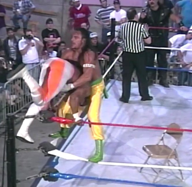 6/10/94 MWCW: Sabu vs. 2 Cold Scorpio 14:40. . This match had a much higher level of urgency than any of Sabu's previous matches, and I think in a different world where promoters didn't just want him to be leaping off chairs and through tables, he might have gone in this direction and had both better matches and far greater longevity as a good performer. They ran and jumped like they actually meant it, rather than expecting the opponent to make effortless concessions to their every whim. The extra effort, resistance, and impact they put into everything made it feel so much less phony, which was important because this was a very athletic match that would normally feel far more cooperative. The opening was really about the best manner a junior style match can be wrestled in. Unfortunately, the ring broke during the 2nd half of the match where most of the high flying was scheduled, so for their own safety they had to slow down to avoid falling off ropes that no longer had tension. They did the usual Sabu start, but this sort of matador vs. bull variation was the best one ever, with Scorpio leaping over 2 of Sabu's diving tackles until Sabu caught his right leg enough on the 3rd to actually drag him down with some force, then really put the boots to him like he was frustrated for being initially thwarted. We'd seen this previously in Sabu vs. Mike Awesome 3/5/94 and 6/3/94 Sabu vs. Scorpio, but not as convincingly, with this level of urgency. Scorpio escaped to the outside, and was running away from the wildman. The rope running sequence stayed in the same vein. Scorpio had to worry about clearing Sabu with his leap so Sabu didn't upend him and reel him in. There was a real sense of danger to this opening, and this is what Sabu should have kept going for, playing into the whole idea that he was a homicidal wildman being unleashed onto his opponent. Scorpio wasn't avoiding because it was nicer to be on the offensive, he was avoiding like it was the difference in the fight, like he was the kickboxer in early MMA that automatically lost if the wrestler or BJJ guy got him down. Their answer to each other's attempts to do bad things was a definitive "no!", rather than the usual "yes, master". The tone of this match was very different than maybe anything else they've done. Even Scorpio's shoulderblock felt emphatic. It wasn't much, but that was his 1st chance to do something to Sabu, so he was going to make the most of it, do it with actual conviction. They didn't stray that far from a typical junior opening in conception, they just did it like there were consequences to their actions, rather than like hollow, meaningless practiced forms. The great thing about Sabu is you never knew what was going to happen, and that kept you wanting to watch. The same input had multiple outputs that didn't necessarily revolve around his opponent. Sabu was willing to miss anything and everything as well as get countered however the opponent was capable. He didn't just do his thing until it was time for whatever his opponent did that would most reasonably counter the move he's prescribed to miss like Will Ospreay with the Oscutter. Scorpio did his best to break free of Sabu's headlock, countering with a backdrop, but Sabu had it applied snuggly, and while he couldn't defend the suplex, once he was in the air what he could do was prepare for impact so he wouldn't lose his grasp. Sabu won a struggle against the ropes, but when he tried a sunset flip powerbomb to the outside, Scorpio held on to the ropes and did a moonsault attack off the apron. This was well on it's way to being the best match of either wrestlers career when the ring broke on Scorpio's top rope superplex. The ropes were loose and sagging, but Scorpio was able to follow with a moonsault, even though it took longer to set up than the way they had been working. The problem here is they had seemingly saved most of the high flying for the 2nd half. They finished as best they could, seemingly without really backing off what they'd intended. I don't think the conditions actually hurt the match or slowed them down that much. They were in the flow, and just pushed through. Sabu probably did more damage to himself than to Scorpio with his Arabian press because there was no spring from these ropes now. Sabu avoided a pescado because it took Scorpio too long to manage the conditions. Scorpio followed with a slingshot leg drop onto a table, but you couldn't really see the result due to the crowd being in the way of the handheld angle. The finish was pretty lame, as Scorpio appeared to hit a moonsault, but Sabu small packaged him for the anticlimactic win. This didn't wind up being as good as it would have, but I think they navigated the adversity well, especially for this style of match. ****1/4