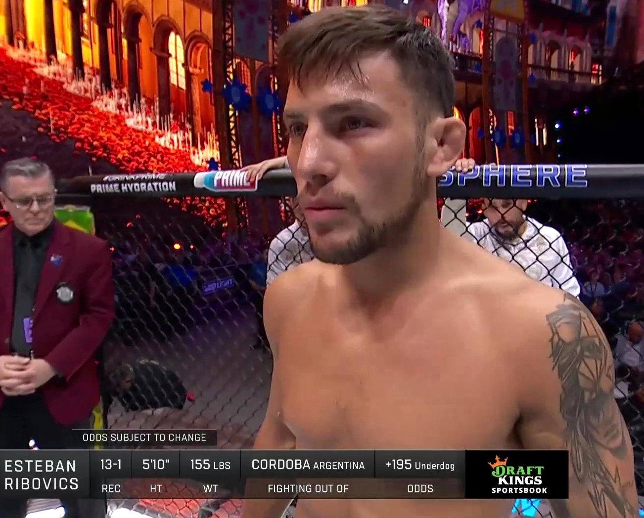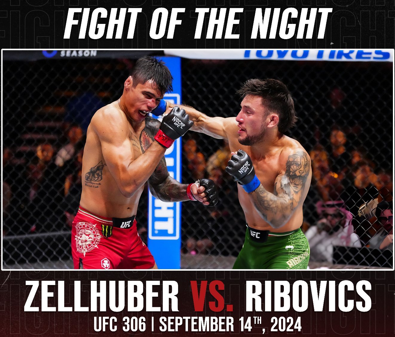 9/14/24 Lightweight: Esteban Ribovics vs. Daniel Zellhuber 3R. Despite an incredible pace and a ridiculous amount of strikes thrown, Ribovics vs. Zellhuber just kept getting better and better each round, with a final round that was an all-timer. Both fighters threw over 300 significant strikes, with the 3rd round boasting a combined 307 significant strikes thrown. Ribovics insane 92 significant strikes landed in round 3 ranks 10th in UFC history, while his 191 attempted ranks 4th. One of the crazy things about this fight is despite being a banger, it was still a good technical fight rather than a chaotic brawl where they were just winging sloppy hooks. Both had good game plans that they stuck to. Ribovics was giving up 8 inches in reach, so obviously he had to close the distance, but he did it technically, and with deception. He kept coming forward with a combo, doing a nice job of mixing the hand he was throwing first and the quadrant he was attacking. Ribovics often finished with a kick on the stance switch, but if he threw a kick first, he usually didn't immediately follow. Ribovics wasn't overaggressive, and he wasn't just biting down on the mouthpiece and coming straight in. He was throwing the first shot when he was closing distance, so it was difficult for Zellhuber to just hit Ribovics before he landed the first strike. Zellhuber was trying to maintain distance at all times by not only fighting behind his jab, but keeping his arm extended in between punches, and using it to push off with when necessary. Zellhuber was certainly the less combo heavy fighter. His goal was to stay long, keep Ribovics off him rather than coming forward behind his jab to land a series of shots. Ribovics did a great job of getting inside and keeping his head moving, so he surprisingly wasn't getting hit back too often while he was throwing his combinations or exiting. He stayed low well, and worked the body, but he never tried to level change to even make Zellhuber consider a takedown. Despite their completely different striking styles, they were incredibly evenly matched, and no one had an advantage for long until the 3rd round. One of the only counters Zellhuber landed was a right elbow early in the 3rd that dropped Ribovics when he was trying to exit after finishing his combo by landing a left. Ribovics barely took a break when Zellhuber gouged him after the knockdown, and came back with a lead uppercut/overhand right combo at 3:15 that sent Zellhuber wobbling. After 30 seconds of Ribovics throwing as fast as he possibly could against the cage, Zellhuber tripped while running away. Zellhuber wasn't answering back, and he was certainly in drunken boxing mode, but he was dipping, ducking, and rolling Ribovics fast shots. Part of the problem is Ribovics was also so excited that he just threw as often as he could rather than measuring his blows a little more, and trying to make sure he landed one big one rather than just mashing buttons. Zellhuber finally started throwing back after another 30 seconds, but was clearly still hurt badly, and just operating on instinct. Ribovics threw what Daniel Cormier exaggeratingly claimed was 1000 punches in the final 3:15 trying for the knockout, but this still wasn't just one way traffic, as Zellhuber did his best to fight back in the final 2 minutes. This was truly an insane and amazing round. Round of the year for sure. The first 2 rounds were consistently good, competitive stuff that could have gone either way, but nothing off the charts like the 3rd where their heart and desire really came to the forefront. While they were trading constantly, they had so many options and adapted so well to what the other was doing that their exchanges didn't become samey outside of maybe the hooks Ribovics was throwing while trying to finish Zellhuber in the 3rd. Ribovics won a 29-28 split decision. Excellent match that will be remembered for a long time. Excellent match